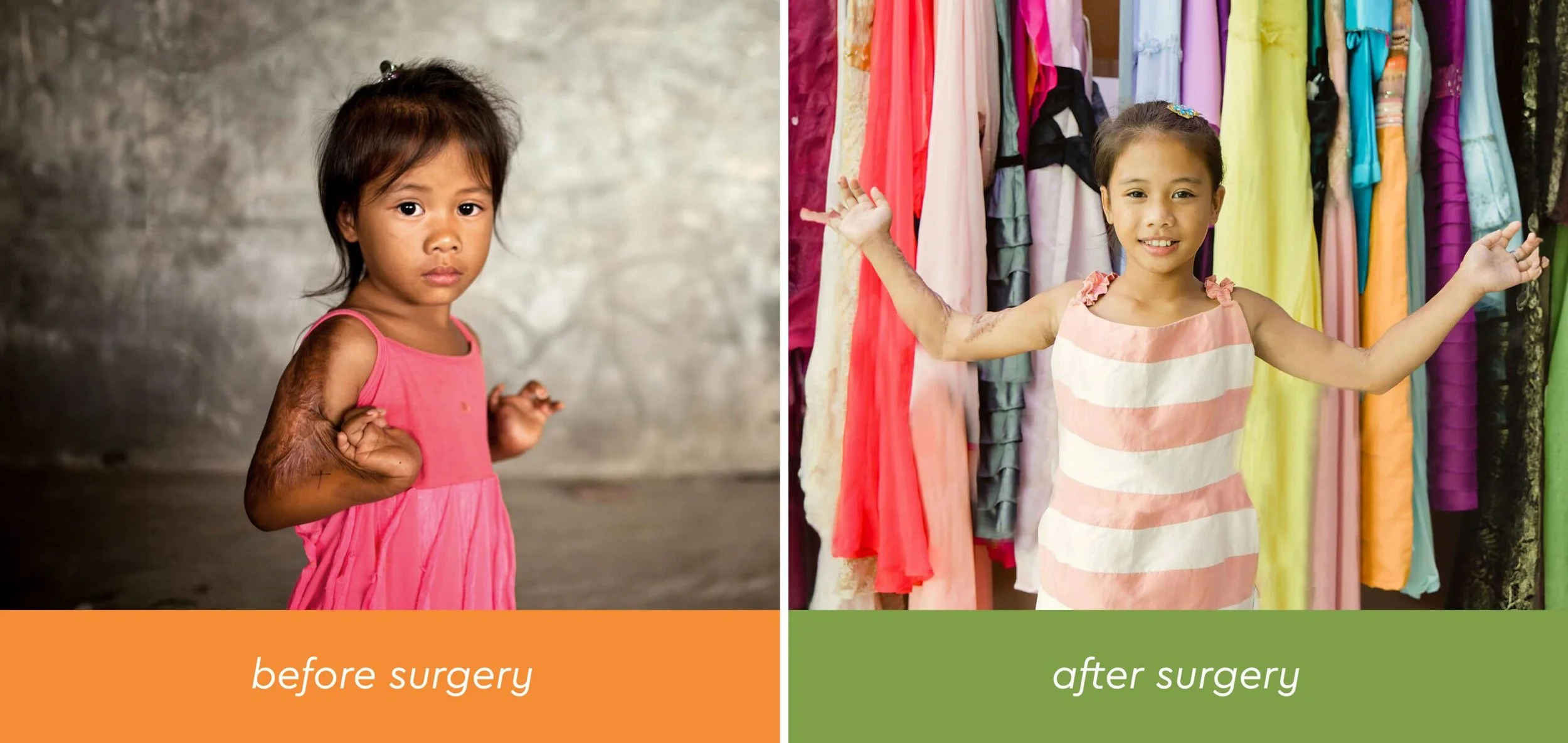 Their local hospital treated her burns—which extended across her back and down her arms—as best they could. It wasn’t enough. Within six months, Jocy’s arms began to contract until her forearms and fingers were fused to her upper arms. Her movement was so restricted that she couldn’t bathe, dress herself, or write on her own.